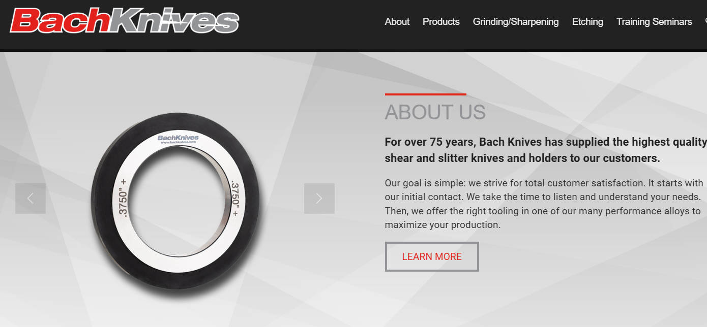 | 8 | Bach Knives | USA | https://bachknives.com/ | Circular slitting knives, shear blades, precision grinding, metal fabrication & converting |